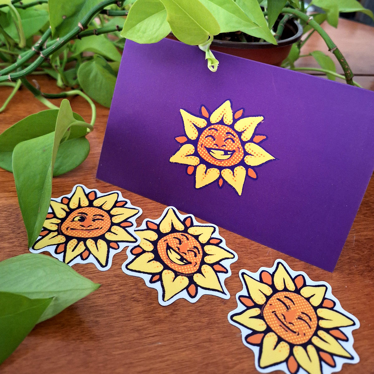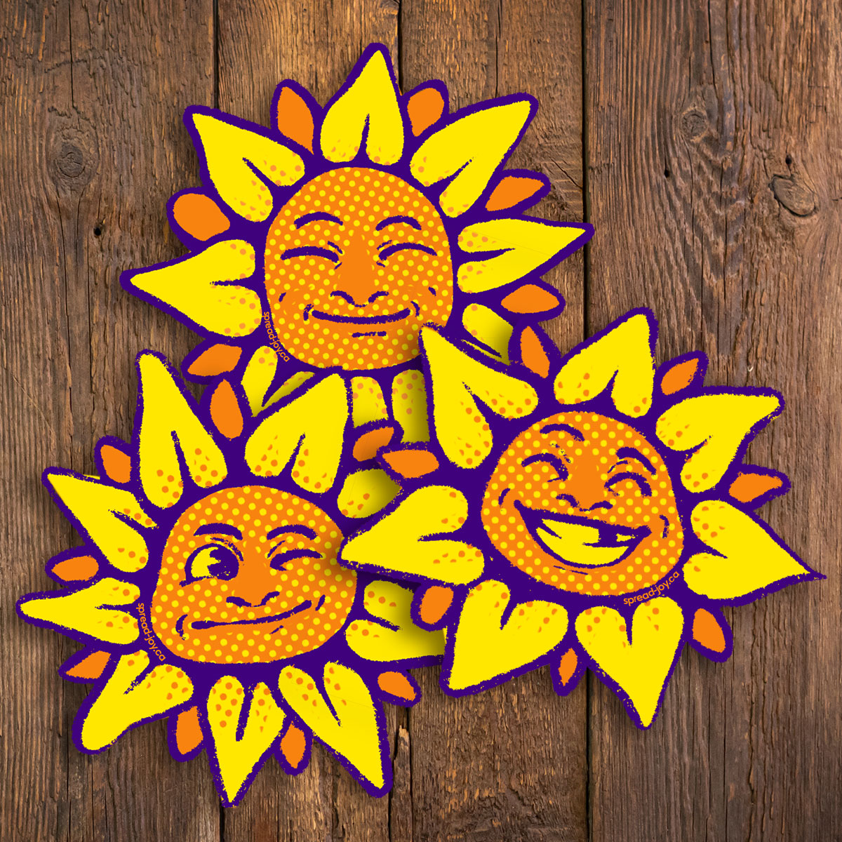 Newly released sticker series: The Sonflower Trio! This limited-edition set features our beloved, toothless, beaming Sonflower, alongside his two joyful brothers, all illustrated by the talented, Isaac O. Comes as a three pack.